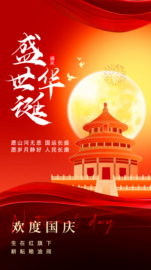 值此华诞,愿山河无恙,国运长盛;愿人民安康,岁月静好。