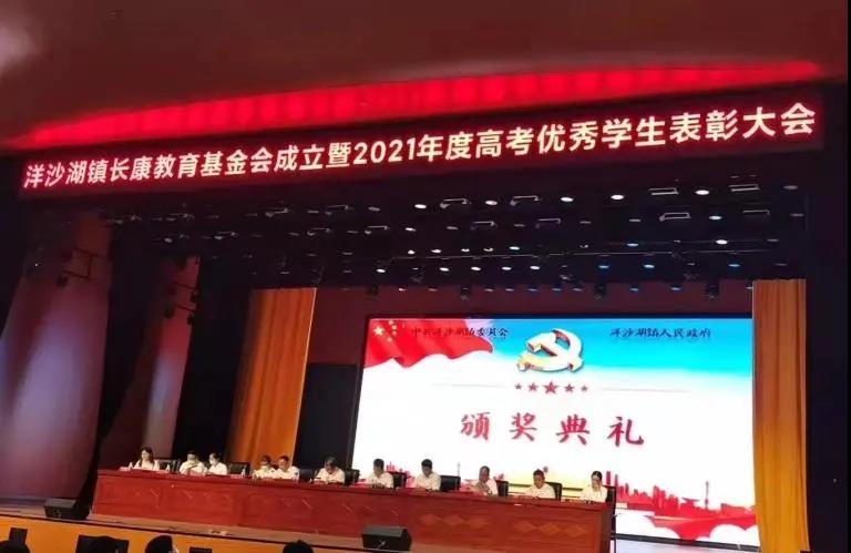 8月27日,洋沙湖镇长康教育基金成立暨2021年度高考优秀学生表彰大会在文郡洋沙湖中学隆重召开。