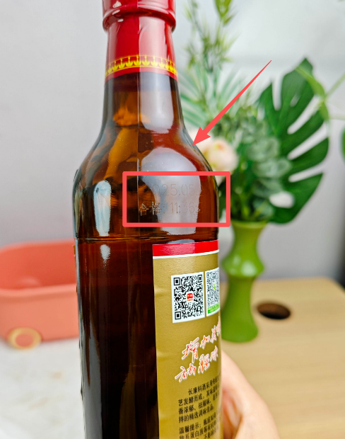 白醋、陈醋、凉拌醋等产品,生产日期一般位于瓶贴上方一圈。